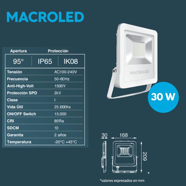 REFLECTOR LED SMD 30W BLANCO IP65 MACROLED