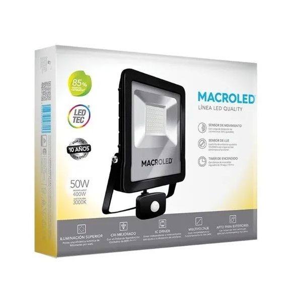 REFLECTOR LED SMD 50W IP65 CON SENSOR MOVIMIENTO MACROLED