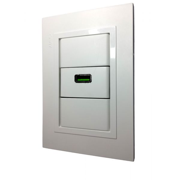SET ARMADO 1 MODULO CARGADOR USB EXULTT URBANA 5V 3A (CARGA RAPIDA) SIMPLE BLANCO