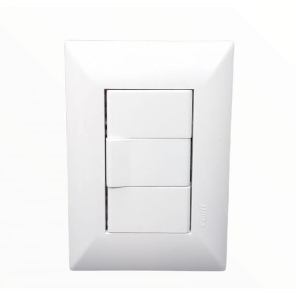 Tapa blanca rectangular + Bastidor de 3 módulos + 1 Interruptor + 2 Módulos ciego.