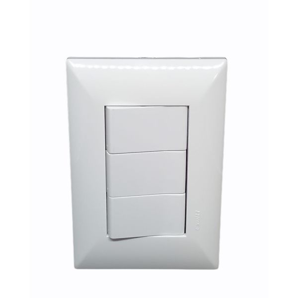 Tapa blanca rectangular + Bastidor de 3 módulos + 3 Interruptores.