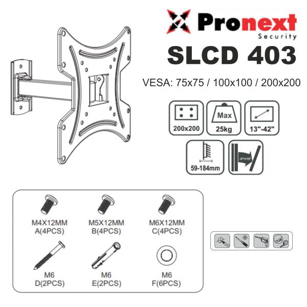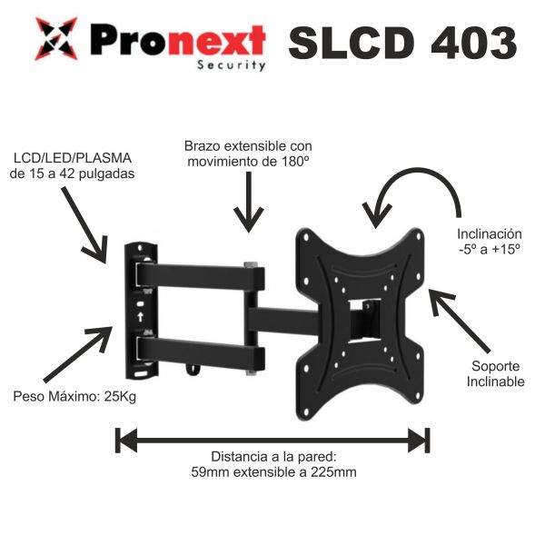 SOPORTE LCD SLCD403 DE 15" A 40" BRAZO EXTEN. C/ INCLINACION PRONEXT