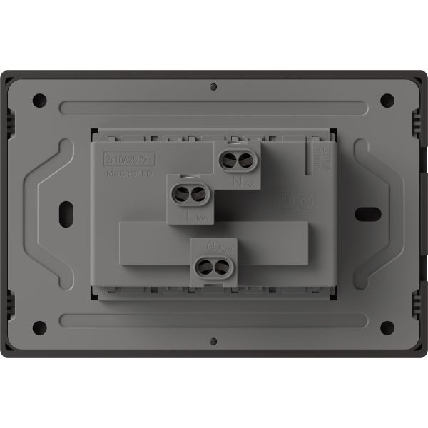 TOMACORRIENTE DOBLE MILAN BLANCO MACROLED, AC 250V, 10A MAX. BASTIDOR METALICO