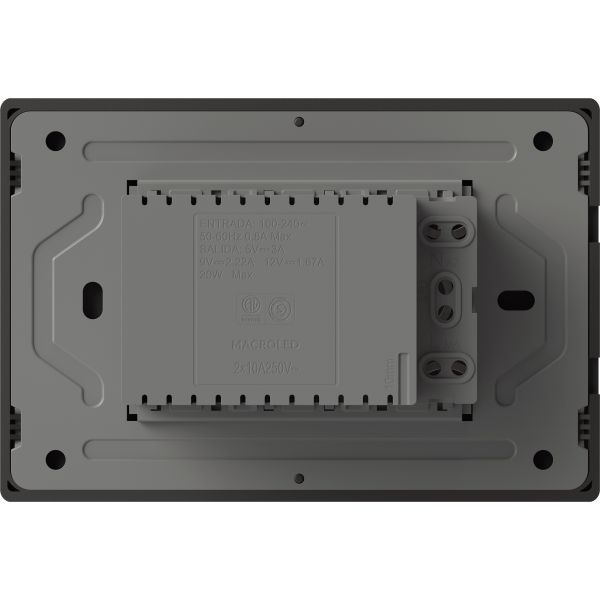 TOMACORRIENTE DOBLE Y USB-C MILAN NEGRO MACROLED, AC 250V, 10A MAX. 1 USB-C DE 20W, BASTIDOR METALICO