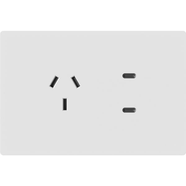 TOMACORRIENTE Y USB-C MILAN BLANCO MACROLED, AC 250V, 10A MAX. 2 USB-C DE 20W, BASTIDOR METALICO