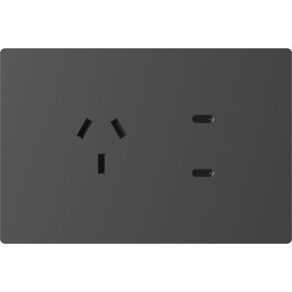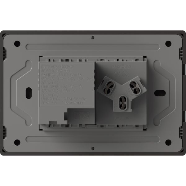 TOMACORRIENTE Y USB-C MILAN GRIS MACROLED, AC 250V, 10A MAX. 2 USB-C DE 20W, BASTIDOR METALICO
