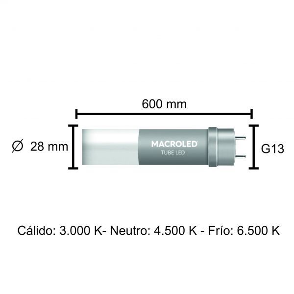 TUBO LED 9W T8 60 CM DE PVC NANO MACROLED