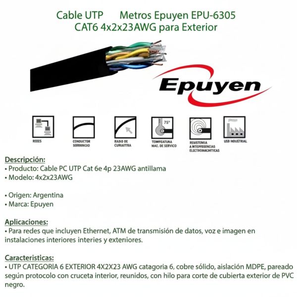 UTP EXTERIOR CAT 6 EPUYEN EXTERIOR X 305 MTS