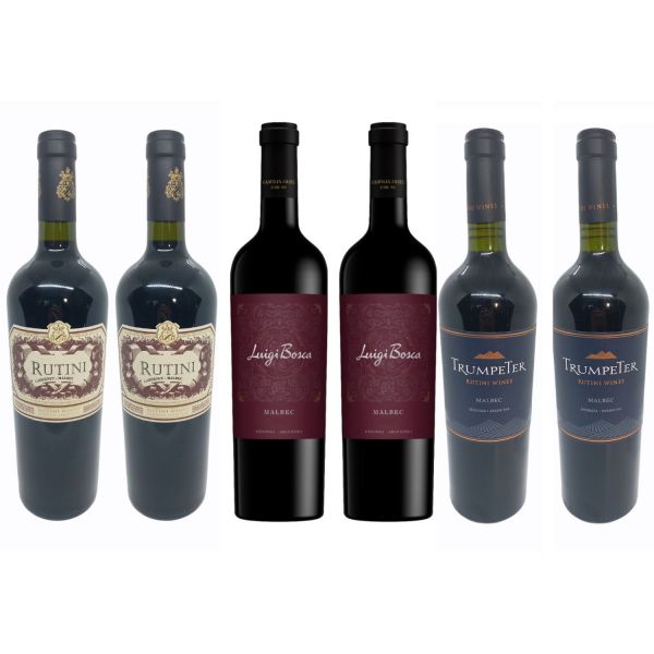 VINO 2 RUTINI CABERNET MALBEC + 2 TRUMPETER MALBEC + 2 LUIGI BOSCA MALBEC