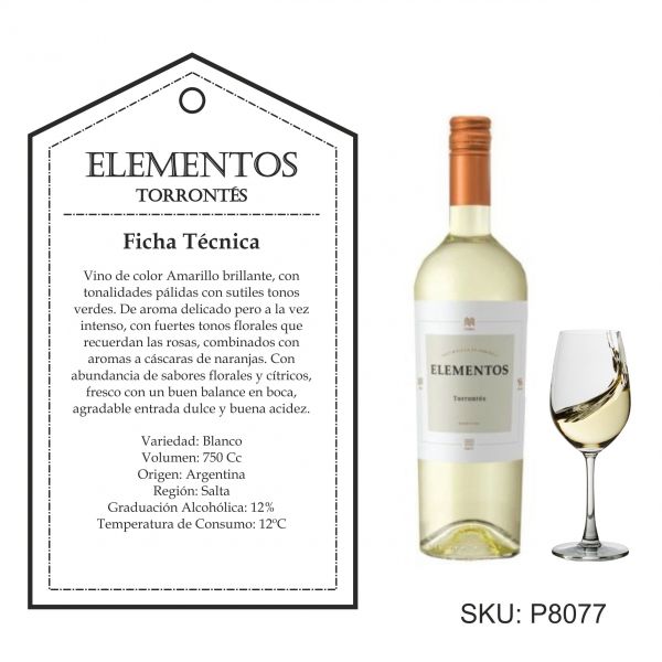 Color: Amarillo brillante, con tonalidades pálidas con sutiles tonos verdes. Aroma: De aroma delicado pero a la vez intenso, con fuertes tonos florales que recuerdan las rosas, combinados con aromas a cáscaras de naranjas. Sabor: Abundancia de sabores florales y cítricos, fresco con un buen balance en boca, agradable entrada dulce y buena acidez.