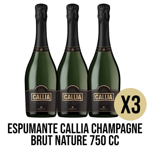 VINO ESPUMANTE CALLIA CHAMPAGNE BRUT NATURE 750 CC X3 UNIDADES