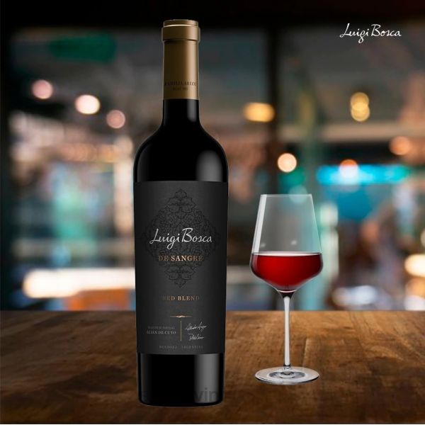 LUIGI BOSCA DE SANGRE · Red Blend es un tinto rojo granate brillante con aromas muy atractivos a fruta negra, pimienta negra y notas de té en armonía, equilibrados con leves tonos ahumados de la crianza en roble. En boca se lo percibe compacto, maduro, con taninos incipientes y textura redonda. Llena la boca con fruta que denota muy buena definición de terroir. Gran carácter y acidez, y final largo, complejo y profundo. Composición: Cabernet Sauvignon 78%, Syrah 12%, Merlot 10%.