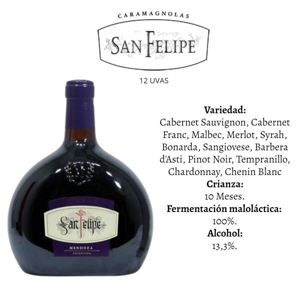 VINO SAN FELIPE 12 UVAS 750 CC CAJA X6 UNIDADES