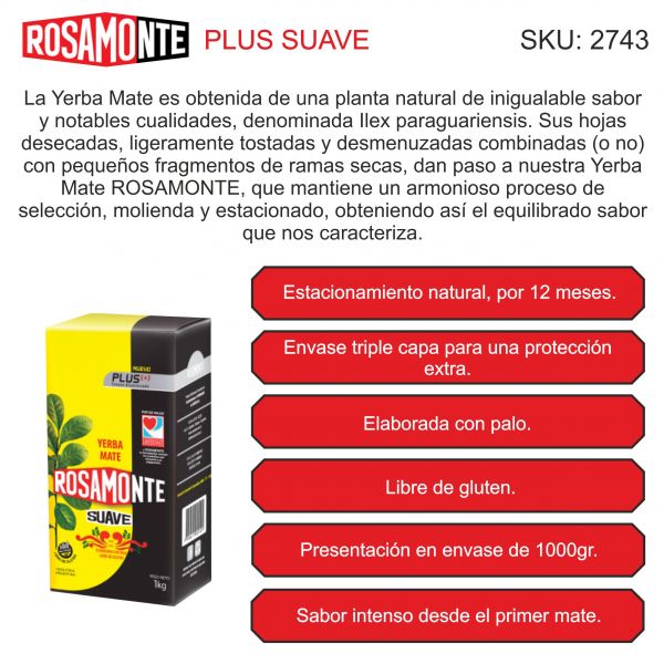 YERBA ROSAMONTE SUAVE PLUS 1000 GR X 10 UNIDADES